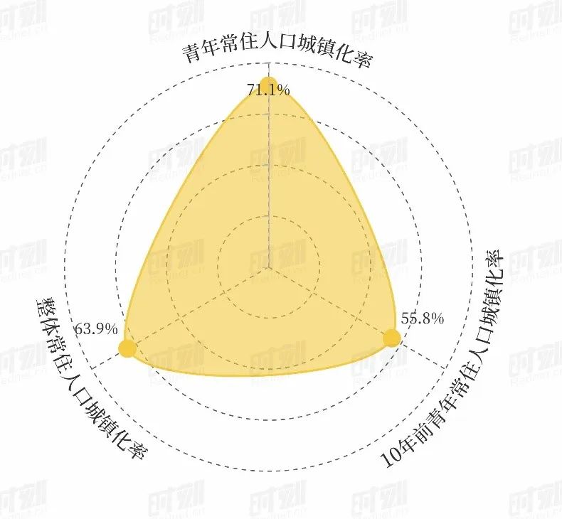 国务院新闻办公室发布《新时代的中国青年》的白皮书显示,2020年,青年常住人口城镇化率达71.1%,高于整体常住人口城镇化率7.2个百分点。显然,未来这一比例还会增长。城市是青年最集中的地方,也是青年发展压力和矛盾比较集中的地方。