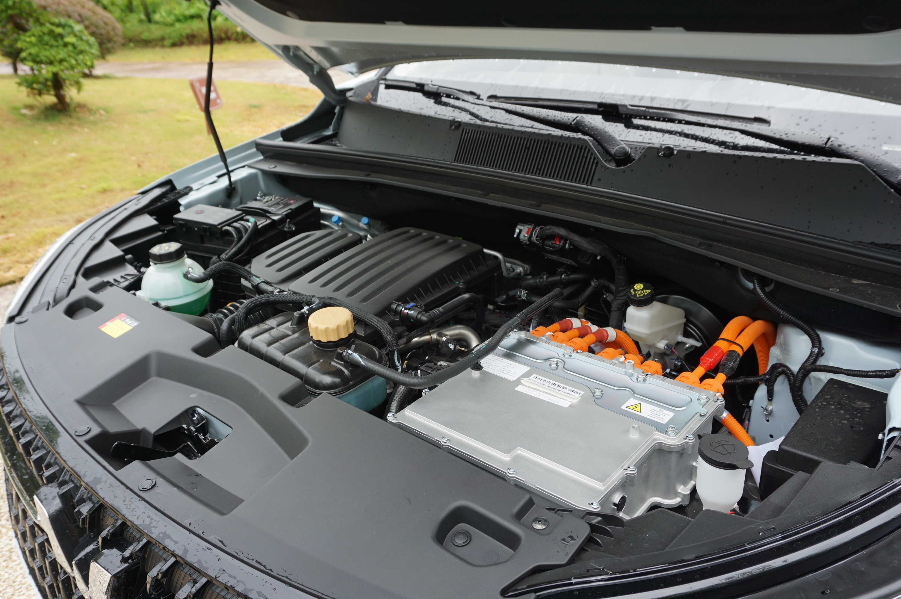 作为一款混动车型,新车动力输出十分平顺,起步后动力响应十分迅速。其在低速时基本都是处于EV模式,驾驶感受与纯电SUV并没有什么差别。当车速超过80km/h后,发动机开始介入,整个过程并没有很明显的切换感,主要是因为转速被控制在了1300转左右,所以在车内的静谧性依然能够得到很好的保障。