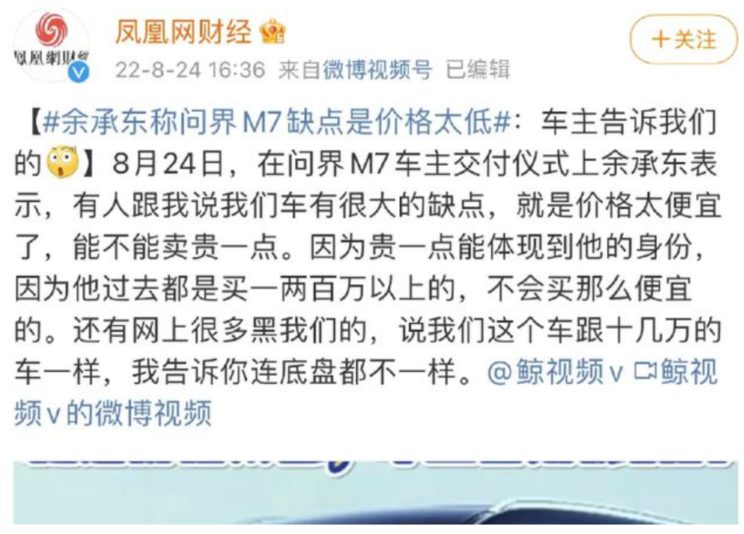 另外,问界M7主动刹车调配得不好偏软——尽管主动安全系统来自博世,也备受诟病。后排没有制热功能,无法提供暖风;以及,问界M7疑似利用东风原有SUV产品换壳,都一步步让消费者对问界M7的产品真实实力产生了怀疑,也让余承东“遥遥领先”的豪言看上去更是吹牛。