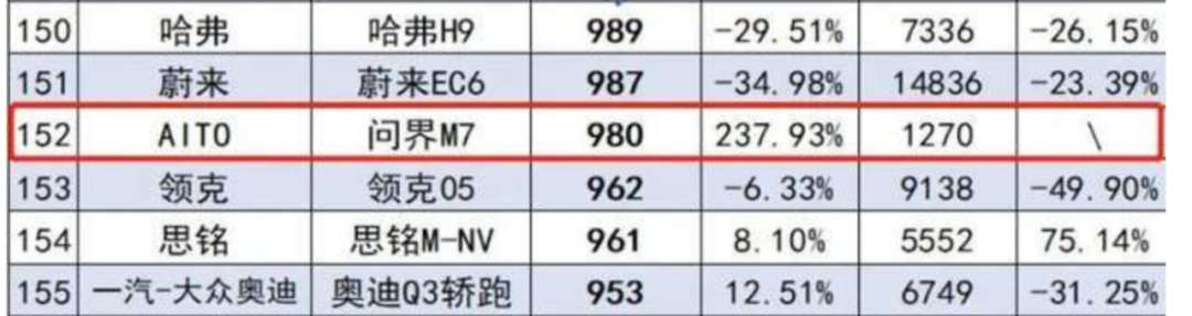 此后多家媒体指出,根据“新车交强险”数据显示,问界M7在8月新车上险数只有980辆。