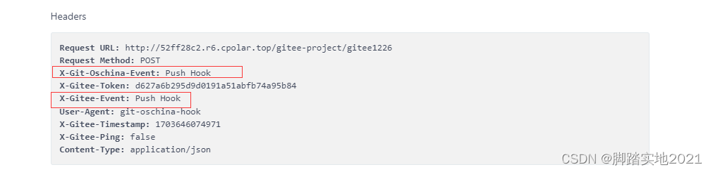 使用gitee的webhook发现一个问题,url及密码都填写正确了,但在gitee平台测试webhook功能时,一直返回404,无法正常进行推送,经过好几天的疯狂查找问题,无论是跨域还是使用带token的url,解决权限都无法满足。后尝试使用其他git平台gitlab去处理(刚下载完git工具,还没使用),再次返回gitee的webhook界面居然发现有返回code200正常推送的记录,再仔细看了一下具体的推送时间,发现这个code200是在pycharm推送代码的时候产生的,也就是说其实推送是可以使用的!gitee平台上的测试推送有bug!于是我仔细查看了一番两个推送数据(返回200和404的入参数据)的不同之处,赫然发现平台webhook的推送数据中(返回404的入参),X-Gitee-Event、X-Git-Oschina-Event是使用的push_hooks,而生产中正常推送的是Push Hook。使用postman改了错误推送的header为Push Hook之后就正常了,可返回200,查看了Jenkins也有推送记录。