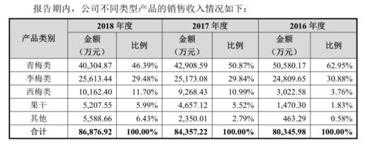 提交上市申请之际的3年前,溜溜果园董秘宁鹏飞接受采访时就声称“公司已开发出厚梅糕、梅冻等产品,正在研发梅醋、梅饮料、梅酒等相关产品。”不同于梅子蜜饯需要每一颗完完整整的梅子作为原料,梅饮料所需梅子原料少,成本低,可溢价空间大,似乎是一个不错的利润增长曲线。然而3年后的今天,梅饮料依旧毫无问世迹象。