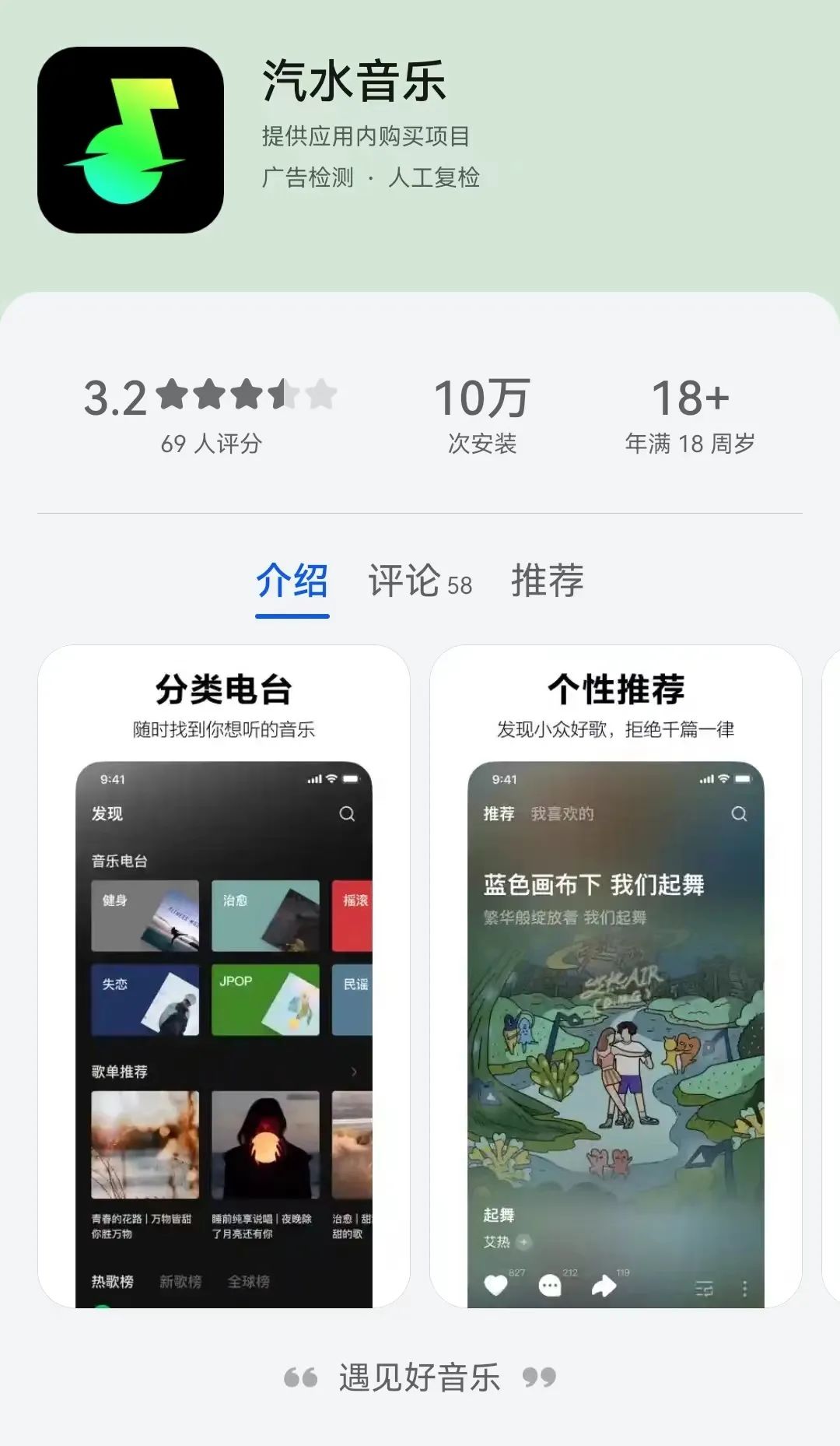 或许是意识到了商业版图的不足,抖音不仅发力音综,也正在布局汽水音乐APP。2022年2月28日,字节旗下音乐平台“汽水音乐”开始陆续上线各大应用商店,试图借助抖音本身巨大的流量资源、抖音音乐人的布局,以及音乐综艺势能形成全面的配套资源。