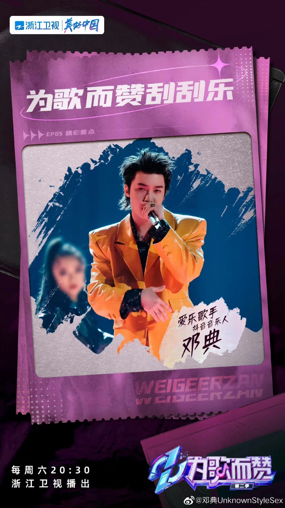 四年之后,当邓典重新站上《为歌而赞2》的舞台,穿着黄色皮衣,唱起《神魂颠倒》时,观众才发现,这首在短视频平台红极一时的BGM,竟然出自邓典之手。