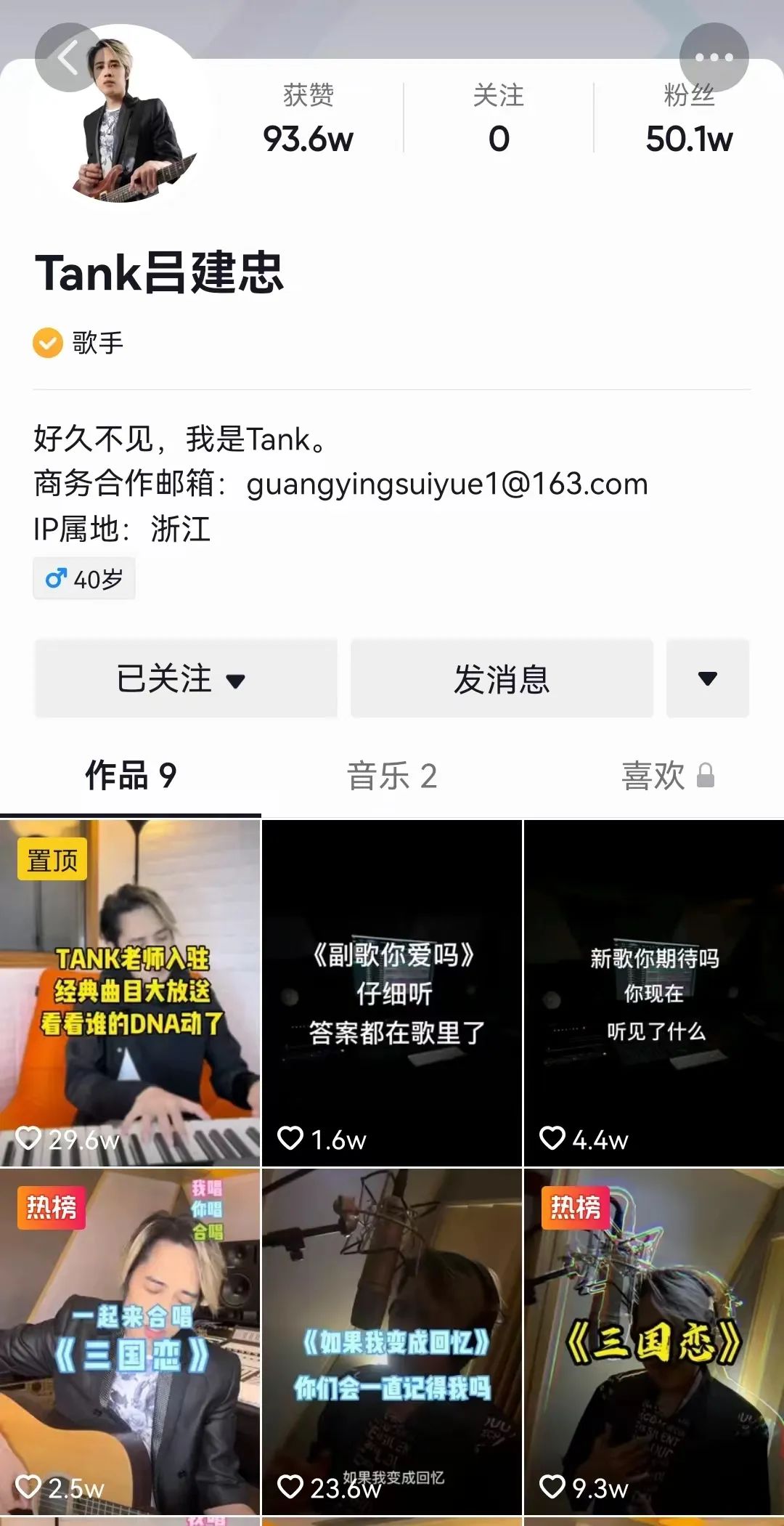 曾在2010年代盛产过《专属天使》《非你莫属》《千年泪》等音乐作品的Tank,再次出现在大众视野。2022年4月23日,Tank正式入驻抖音,他的自我介绍上也颇有久别重逢的意味:“好久不见,我是Tank。”