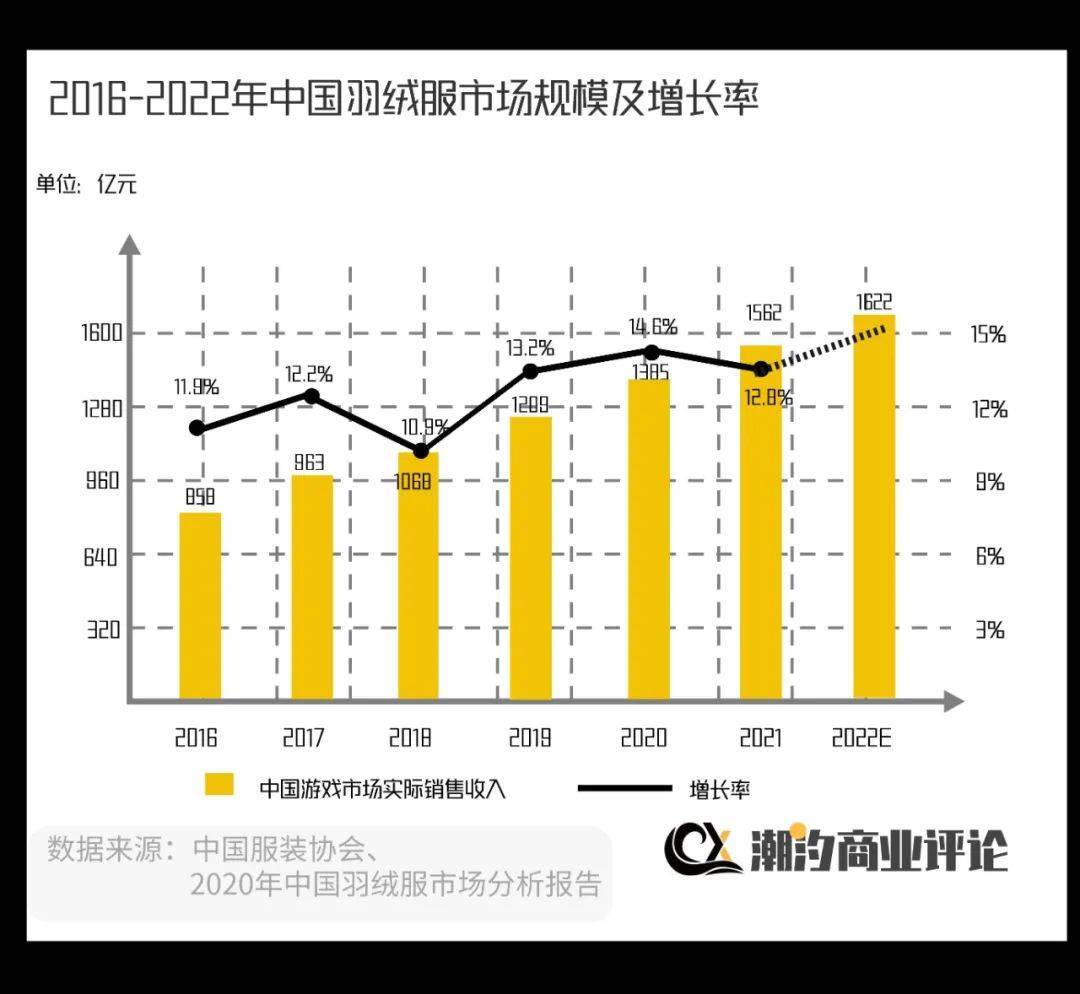 硬币的两面虽各自独立,但发展的过程却是相互牵连。羽绒服市场的低渗透率,也让市场越发充满可能性。根据《2020年中国羽绒服市场分析报告》显示,预计2022年,中国羽绒服行业市场规模将达到1622亿元。中信证券在研报中称,预计中国羽绒服市场未来至少还有20%以上的增量市场存在。