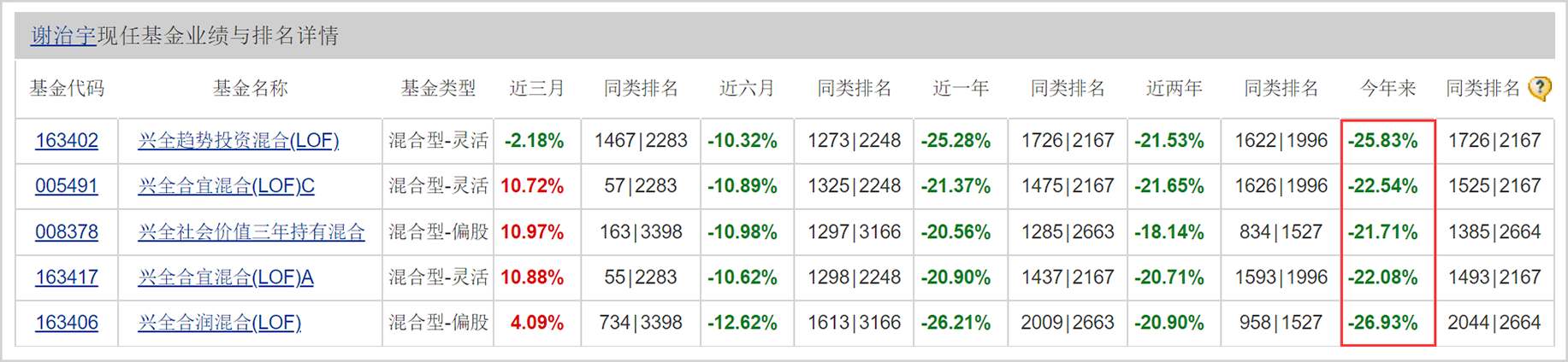 与此同时,葛兰等诸多明星基金经理的集体翻车,其中曾创出8年6倍增长神话的兴全一哥谢治宇,不仅跑输同行,还跑输了沪深300。