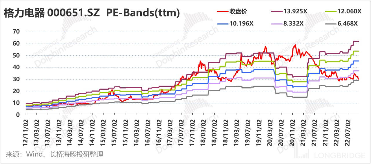 在整体需求不足,行业承压的背景下,需要进行渠道改革的格力电器似乎比竞争对手又多了一道难题,并且目前仍然不能斩钉截铁的给变革成果定下结论。即使格力电器现在还能做到一个称得上是满意的成绩,但依旧阻止不了估值杀到接近历史最低。最后从投资角度而言长桥海豚君认为,现在可能不是进场的最佳时机。相对于业绩,目前对股价最大的影响因素是对未来需求的悲观预期。正如同在《美的集团:行业遇冷,共克时艰》中提到的那样,信心的急剧逆转总是忽然发生,但是在发生逆转之前,还需要更多的耐心。