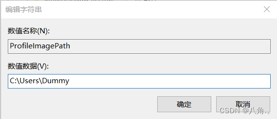 同样双击打开【ProfileImagePath】,并将【数值数据】改为自己喜欢的名字