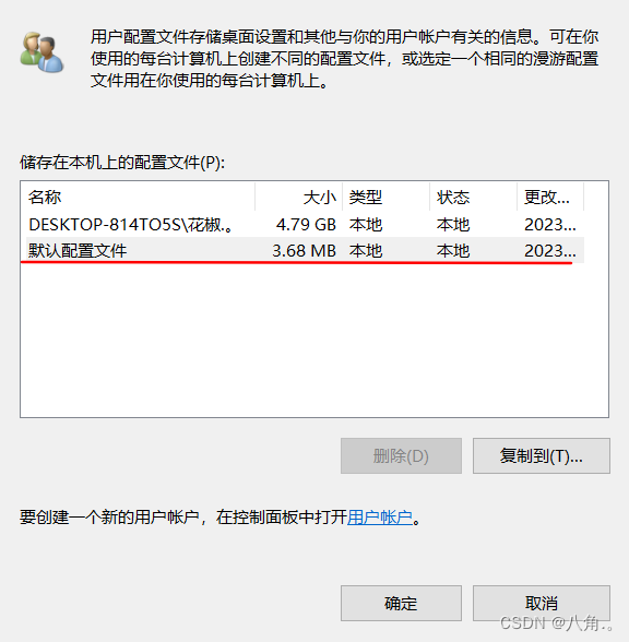 3、 选择默认配置文件,并将其复制到C:\User\上面【注册表】里查询到的名字