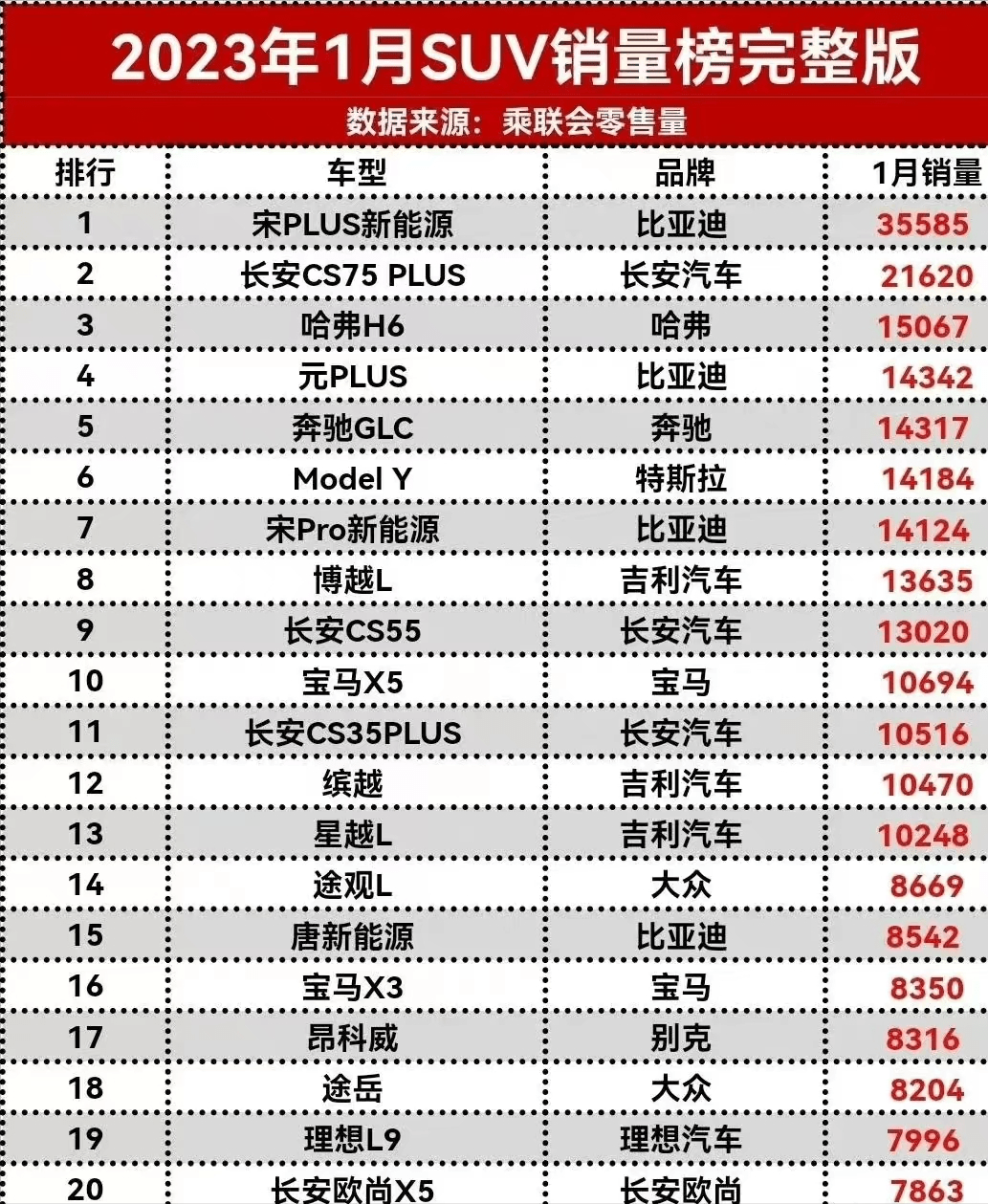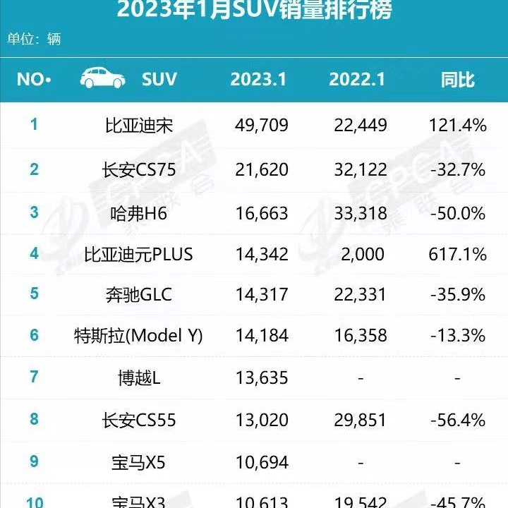从2023年1月的SUV市场销量来看,SUV市场正在发生新一轮的市场洗牌。业内在感叹日系车已消失在SUV榜单之时,却忽视了曾经的国产SUV一霸——长城的境况也愈加不乐观了。