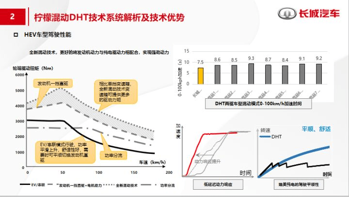 长城柠檬混动的DHT混联技术也算一项有竞争力的技术,但在市场上的认知不够,长城的DHT混动系统采用双电机混联结构,可以纯电、并联、串联,还可以实现两挡发动机直驱,与比亚迪DM-i混动相比,很难说孰优孰劣,业内基于比亚迪DM-i和长城DHT,谁才是国产最强,有很多分析,但明显后者的市场认知度更高。
