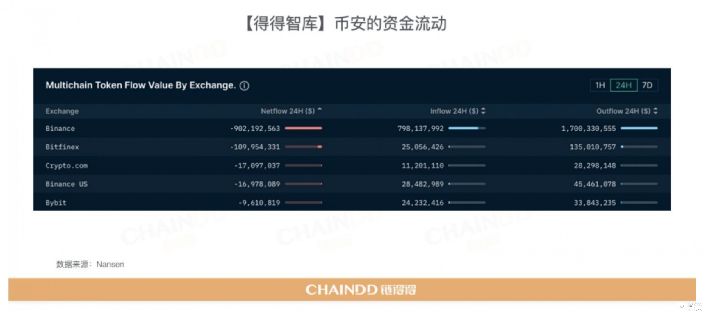 区块链情报平台Nansen的数据显示,在路透社披露美国监管部门从2018年开始对币安进行调查的消息之后,币安资金净流出达到9.02亿美元,已超过所有其他中心化交易所,几乎是第二大资金流出量的九倍。