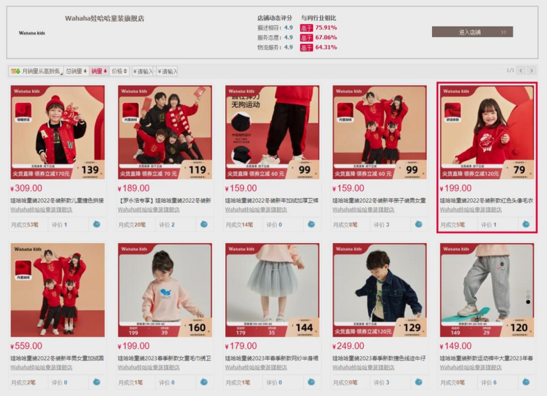娃哈哈童装天猫店销量。图源:天猫