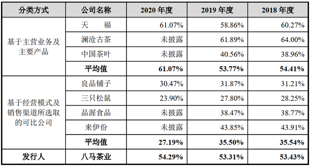 据招股书数据显示,2018年-2020年八马茶业的毛利分别为53.69%、53.66%和54.56%。其铁观音及部分岩茶为自主生产,大部分产业产品通过成品供应商采购,这样就导致八马茶业的采购成本价格也随着市场变化不断的上下浮动,无法管控成本空间。