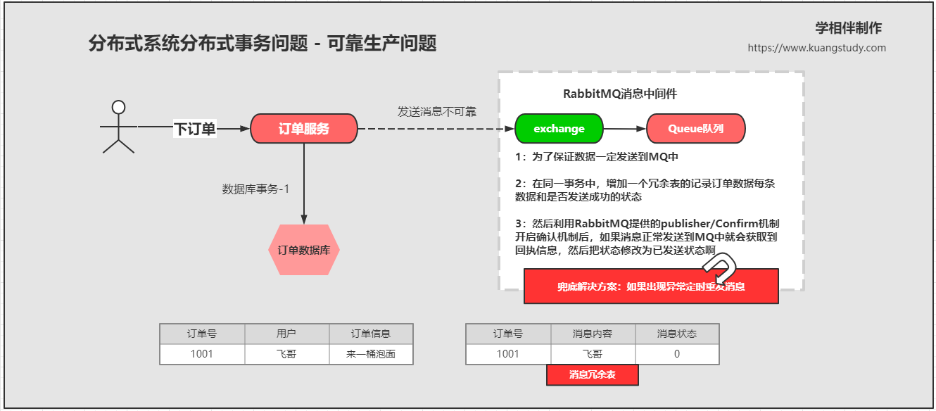 主要是通过一张冗余表和定时任务解决了可靠生产的问题