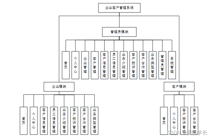 系统设计主要是管理员登录后对整个系统相关操作进行处理,可进行管理员的添加和删除,首页、个人中心、企业管理、客户管理、客户信息管理、员工信息管理、业务介绍管理、客户投诉管理、客户合作管理、业务类型管理、管理员管理、系统管理等操作管理。