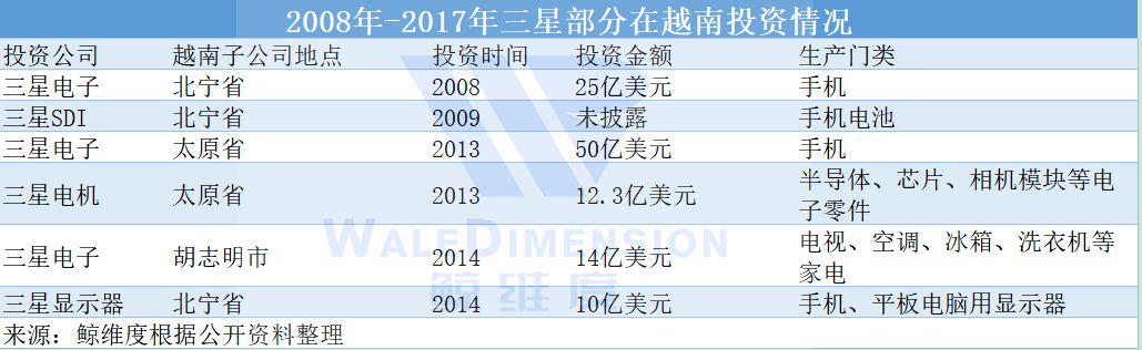 当然,在新兴国家的发展,都会经历探索过程。三星在越南的投资并非一帆风顺,虽然早在1996年就已进入越南市场,但直到2008年,当地政府才批准三星电子手机工厂建设项目。