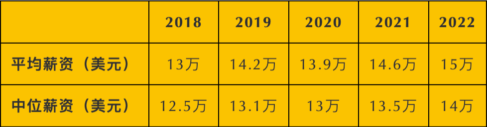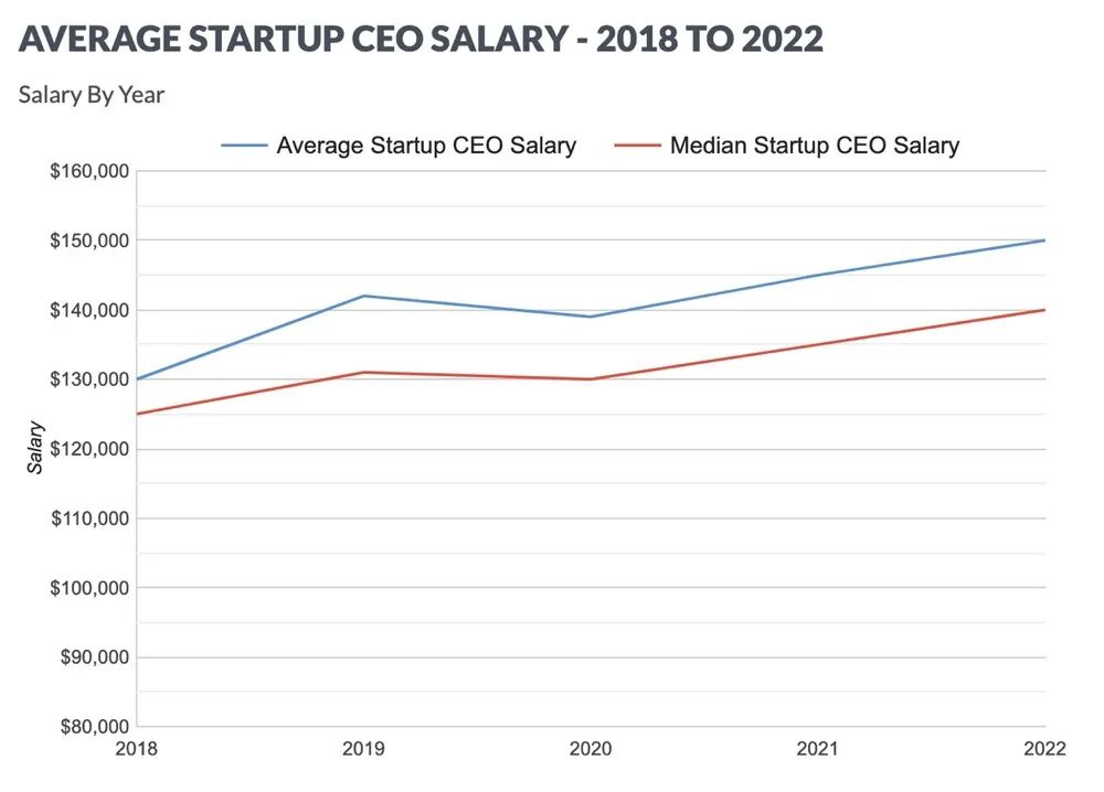 2022年,创业公司CEO平均薪资为15万美元,同比上涨2.7%;薪资中位数为14万美元,同比上涨3.7%。