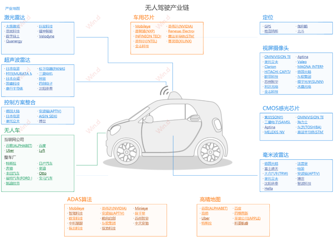 无人驾驶直接带来传统汽车产业燃油驱动到电驱的转型升级,其上下游升级见上图,过去一年我们输出过很多分析。此处,我们注重来聊一下技术外溢。