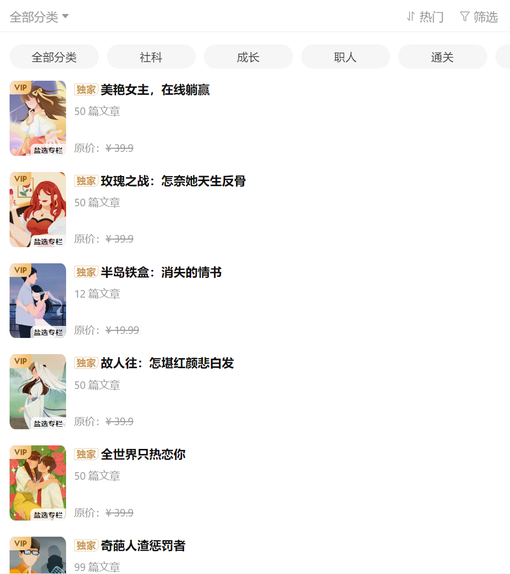视频平台用户真心愿意为了去掉冗长的广告和观看独家内容而购买会员,但图文平台很多广告不像视频平台广告那样来得直接,独家内容的价值也难以验证。在知识付费风潮远去多时之后,知乎选择了一个已被大规模验证过的文字付费模式,那就是网络文学。通俗点说,故事。