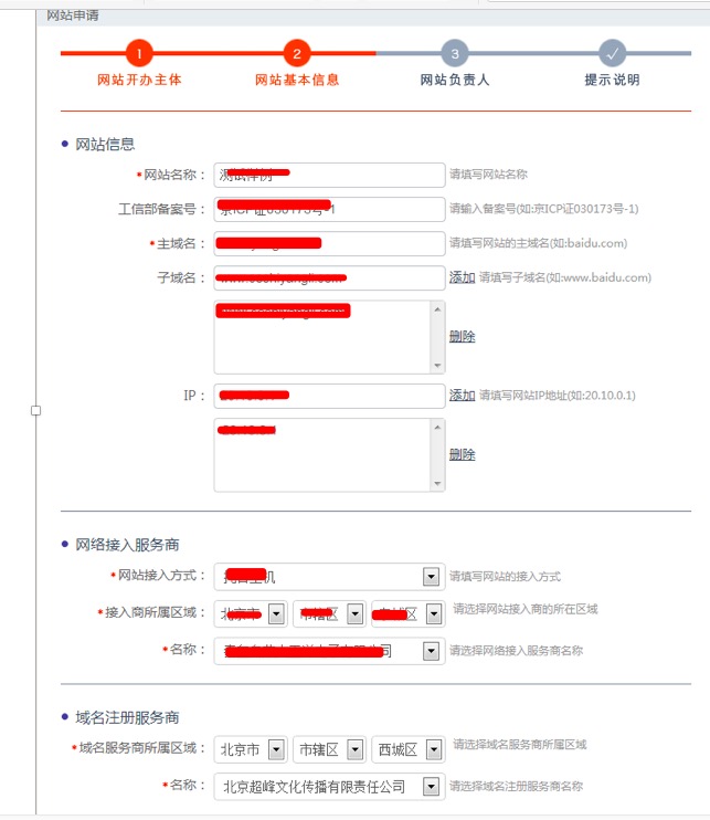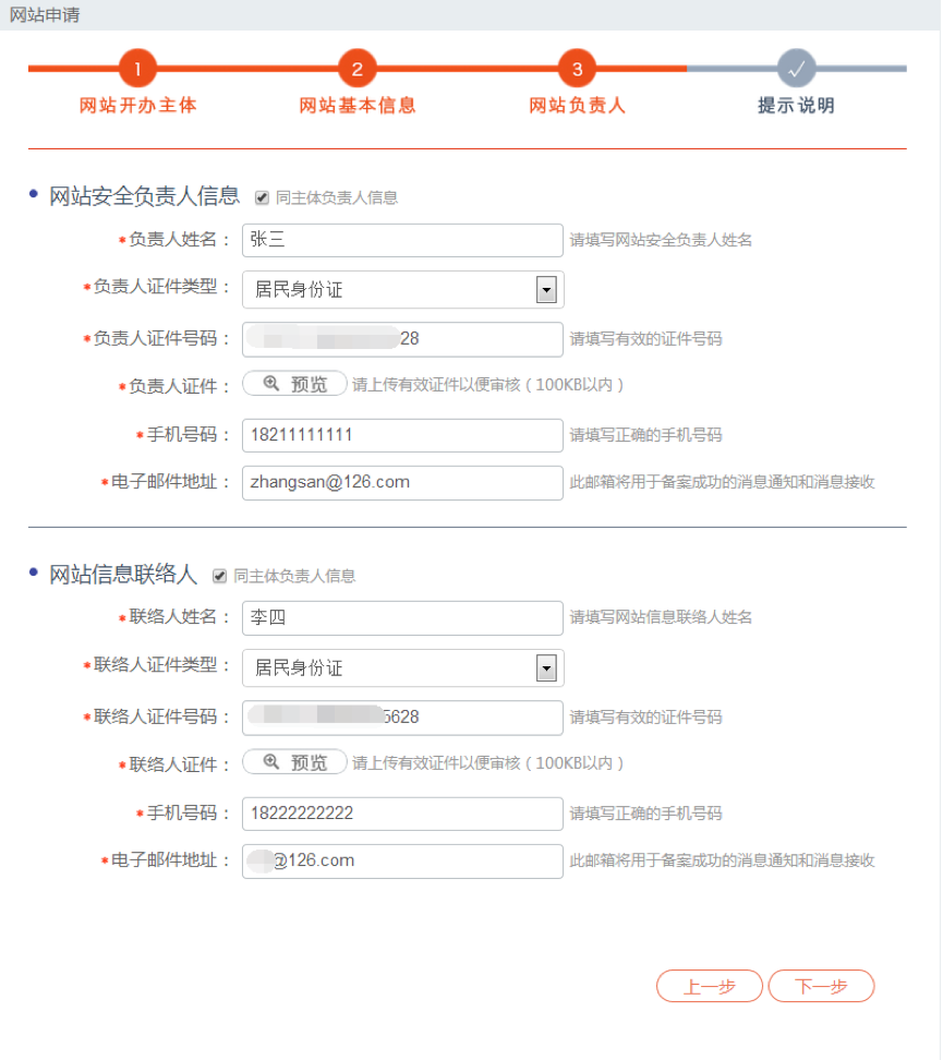 第三步:网站负责人信息填写