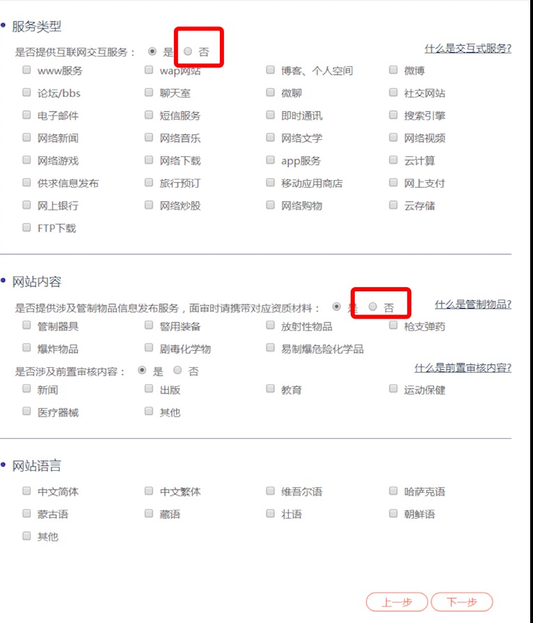 注意:个人网站的话服务类型一点要选否,不然审核非常复杂要填写很多表格