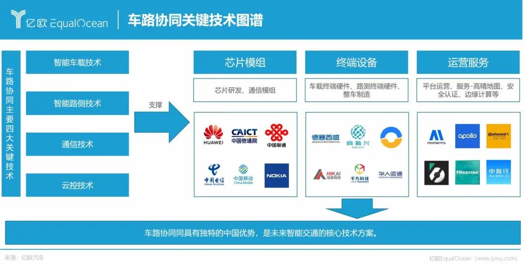 从技术角度划分,亿欧汽车认为,车路协同主要包括四大关键技术:智能车载技术、智能路侧技术、通信技术、云控技术。