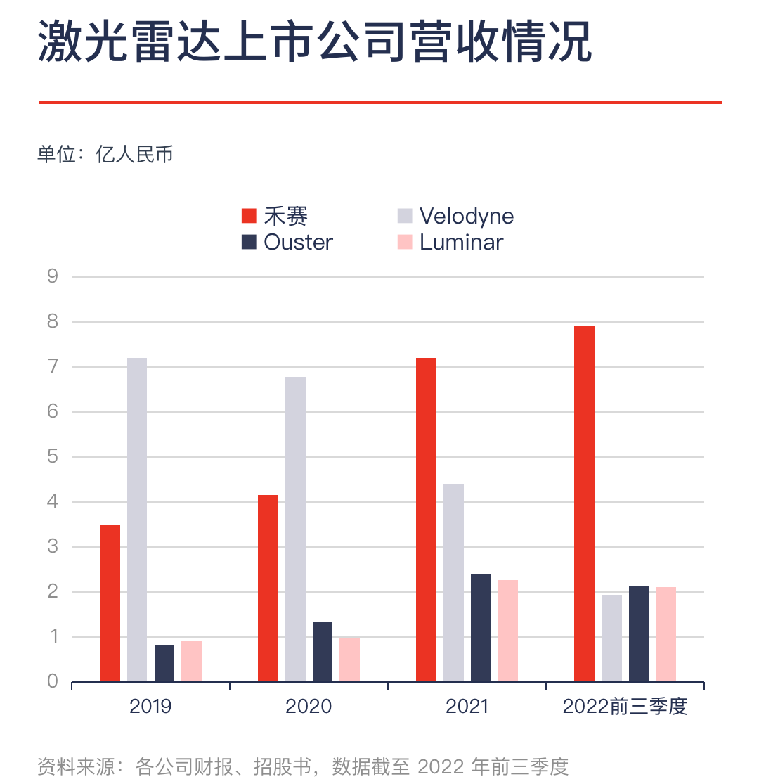 禾赛的经营数据也能说明一些问题。2022年前三季度,禾赛的经营亏损达到了2.38亿元,比2021年同期多亏损了5000万美元。