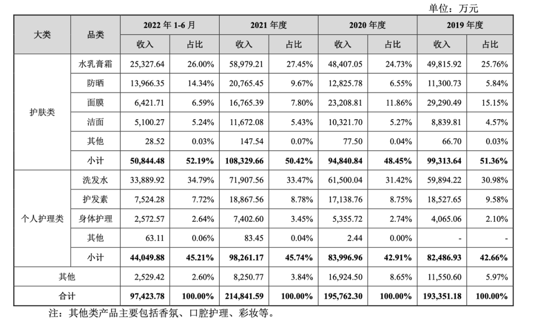 细分收入占比方面,环亚科技护肤类产品2019-2021年占比分别为51.36%、48.45%、50.42%,2022年上半年占比为52.19%。个人护理类产品2019-2021年占比分别为42.66%、42.91%、45.74%,2022上半年占比为45.21%。