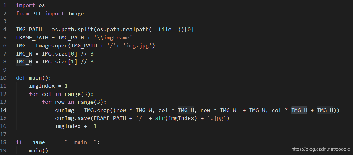 ** 传的参数是一个四元组,分别是左上角和右下角的像素坐标。那思路就很简单,就通过设置不同的参数,把图片截取成9块就可以了**