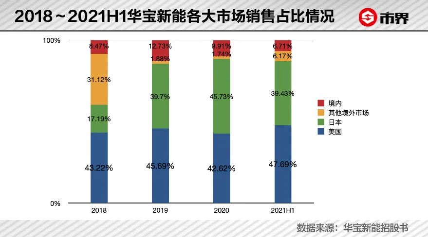 不过,华宝新能的业绩主要是境外市场贡献的,尤其是美国、日本等市场。