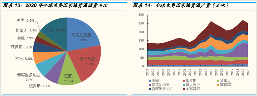 从镍的全球化分布来看,印尼在储量和产量上均是世界第一位,在镍资源上话语权极大。