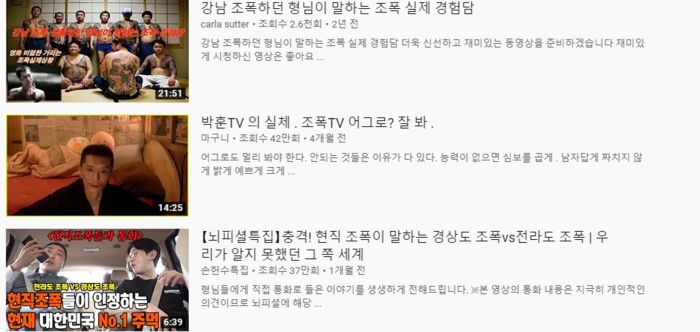 从2017年开始,很多韩国的黑社会开始在YouTube上直播当网红,并且直接在直播间的标题写上“黑社会”“黑道大哥”吸引观众。这些搞直播的黑道大哥喜欢教观众怎么分辨真假黑社会,至于自己怎么混到要赚直播打赏,这些人自然是绝口不提。