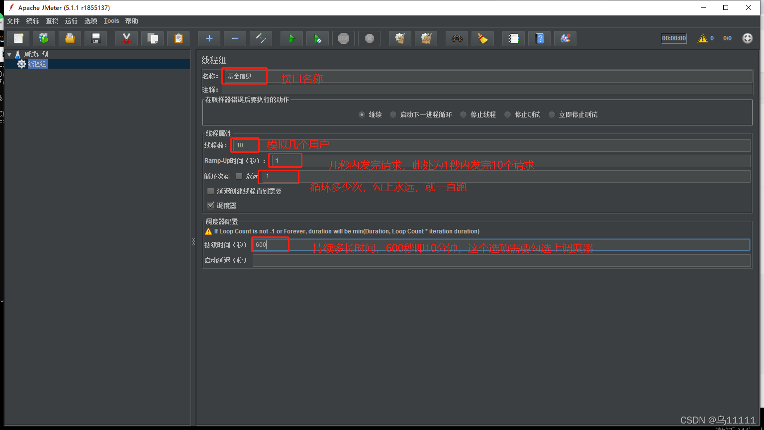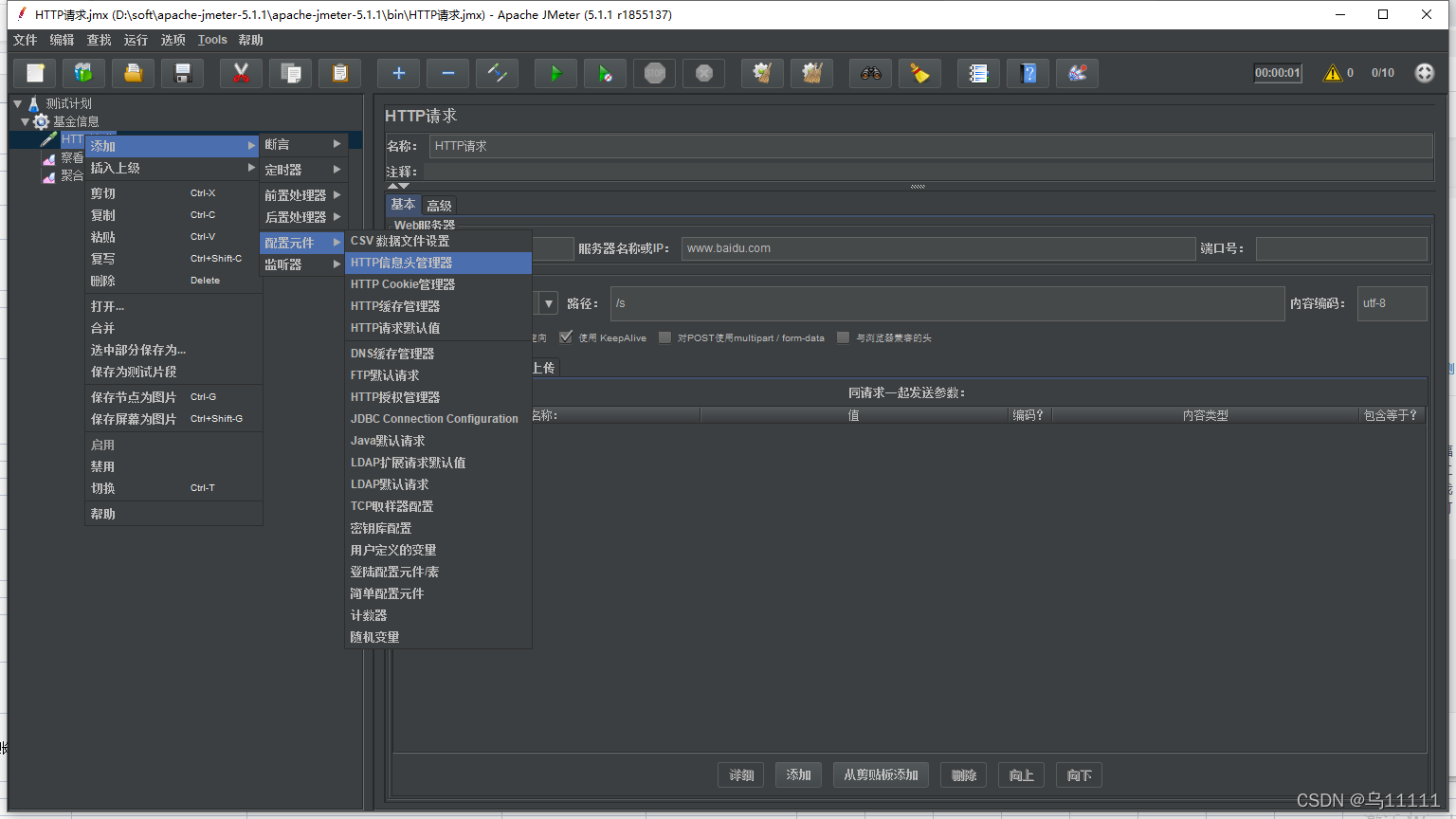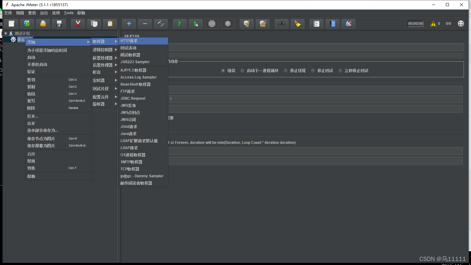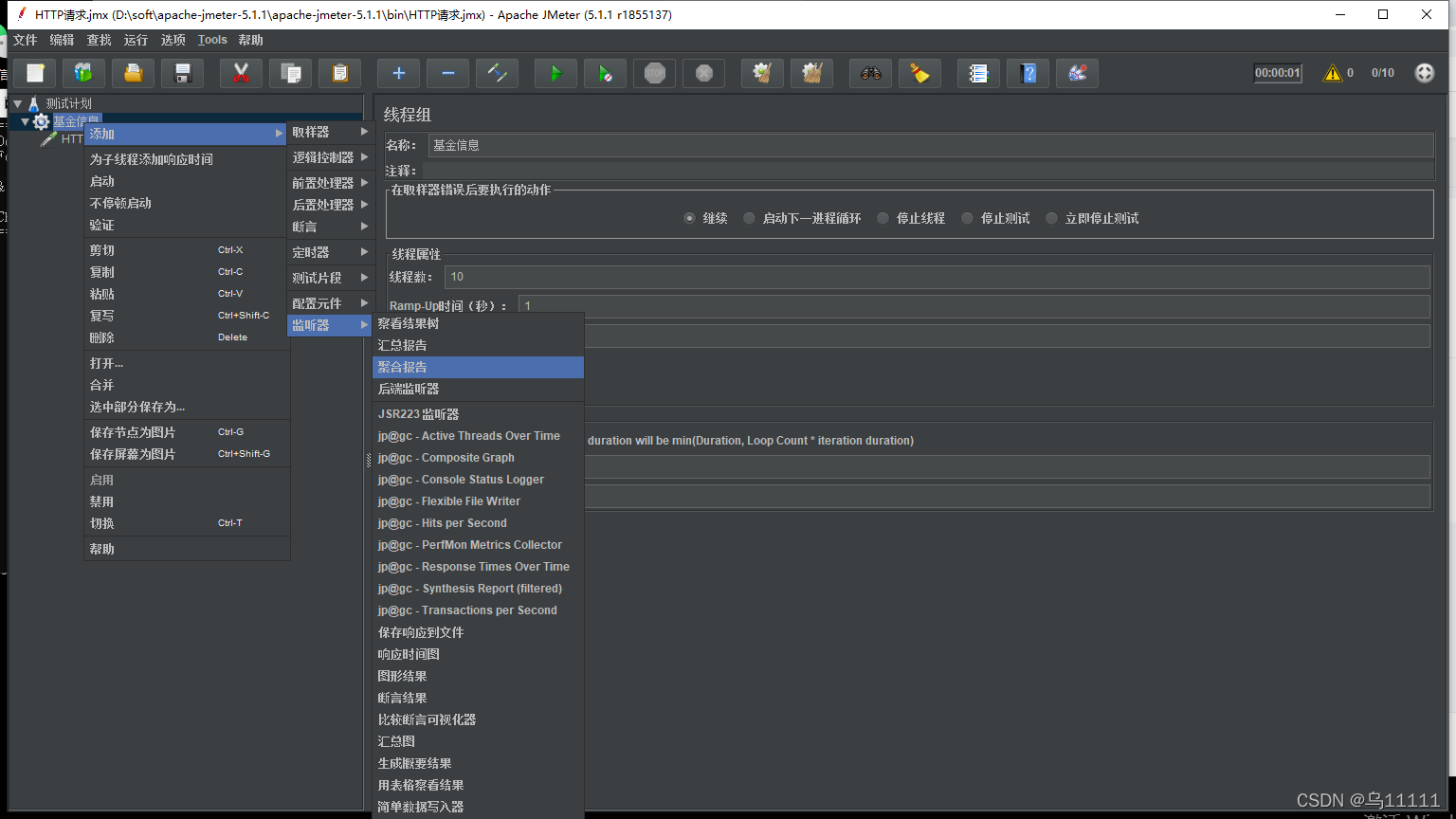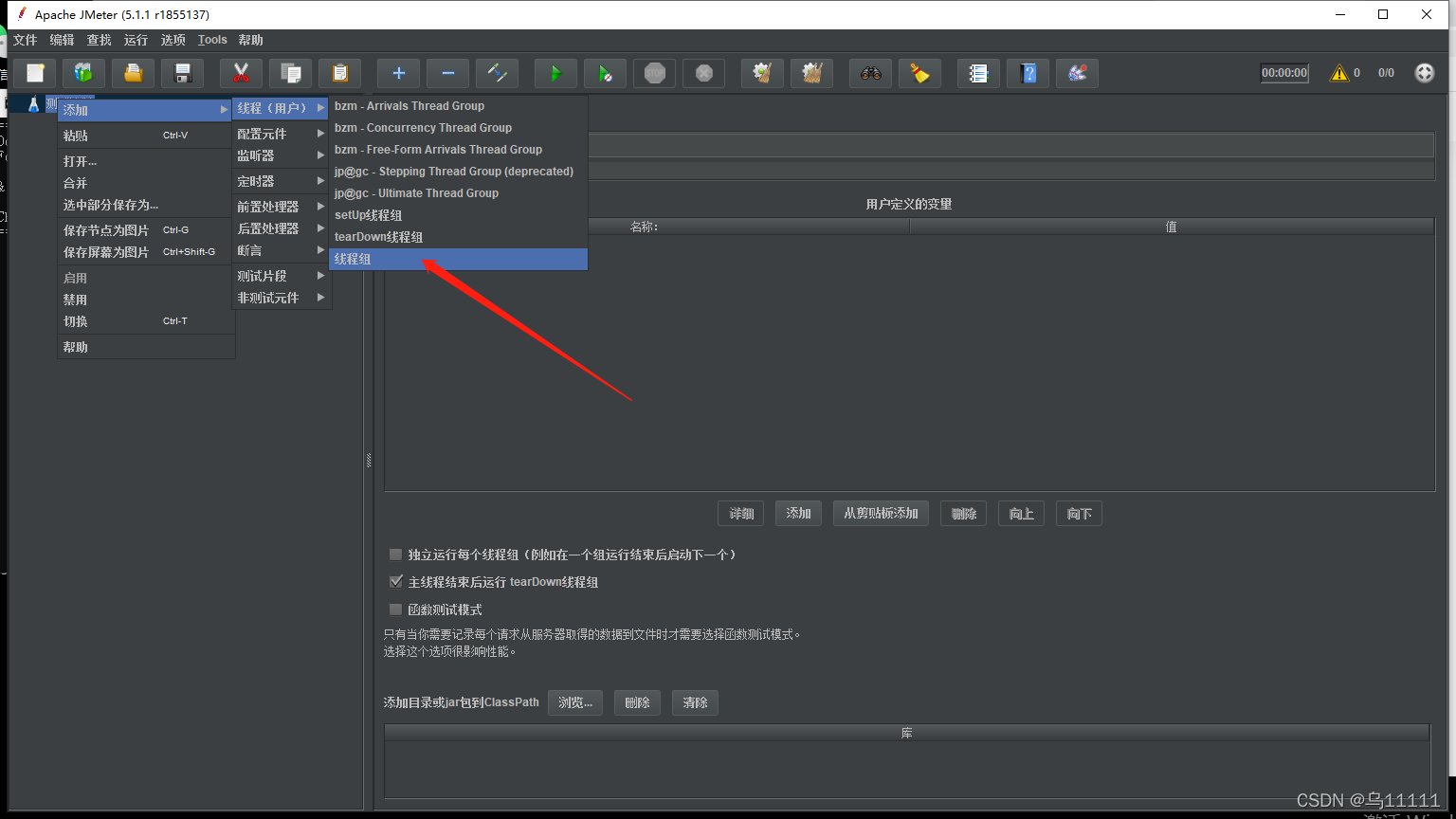 第一步,在测试计划里添加一个线程组(要压测的接口名称),如图所示,在测试计划里右键--添加--线程--线程组就可以了。
