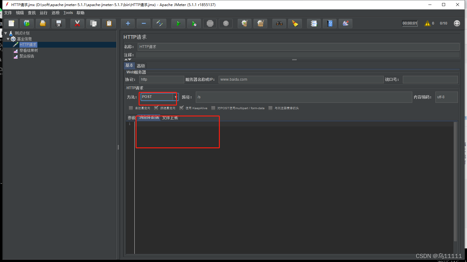 第三步,添加请求,在线程组上右键--添加--取样器--HTTP请求,具体参数如下,