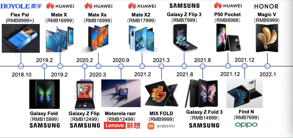 各厂家折叠屏手机推出情况(图:华泰研究整理)