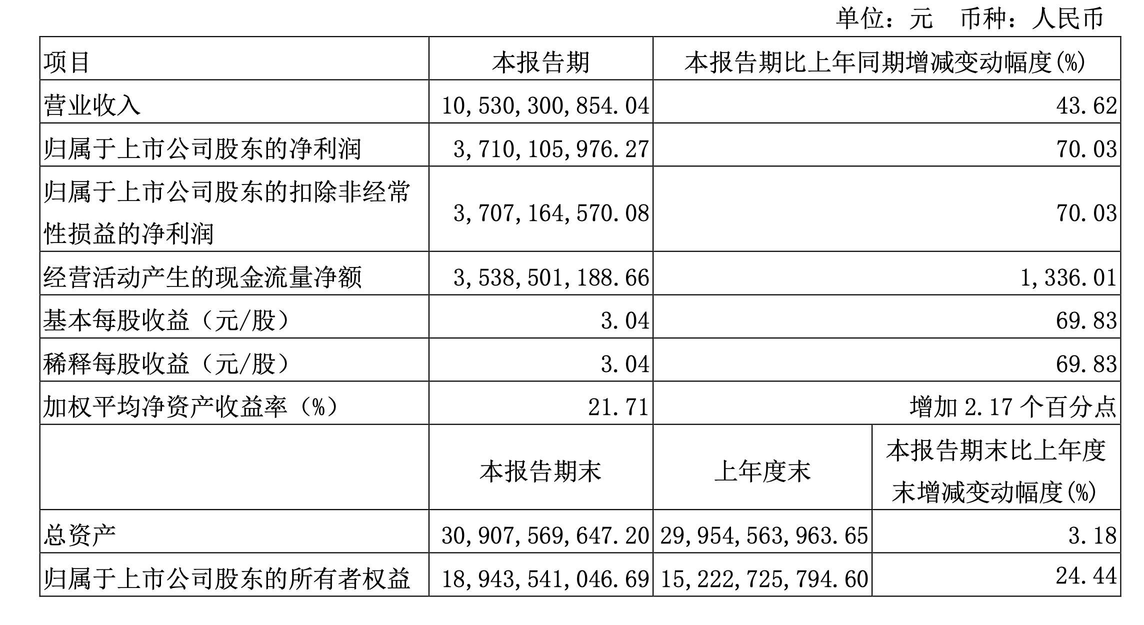 4月27日晚,山西汾酒(600809.SH)发布2021年年报显示,报告期内,公司实现营收199.71亿元,同比增长42.75%;实现净利53.14亿元,同比增长72.56%。基本每股收益4.37元/股,同比增长72.51%,拟向全体股东每10股派发18元现金股利(含税)。