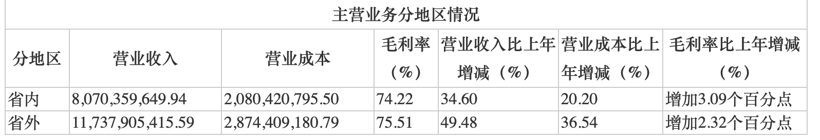 2021年汾酒分区域营收情况 数据来源:公司年报