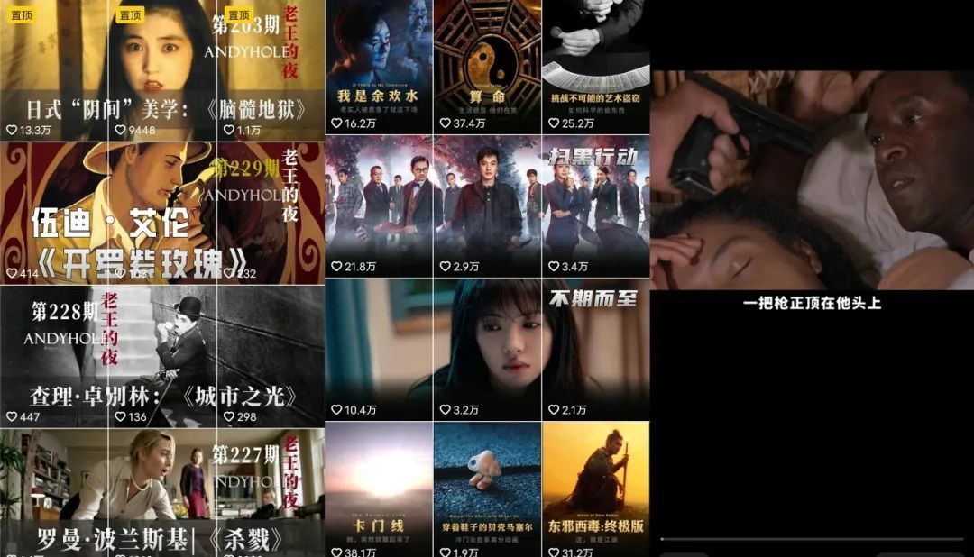 如今,在抖音、快手上有不计其数的电影解说类账号。在这一细分垂类下,毒舌电影、布衣探案、乌鸦电影等账号的粉丝已经达到了千万级。他们的更新频率大多是3到4天更新一期,一期一般分为三个视频发布,这意味着他们必须在三到四天的周期内完成选题、脚本撰写、素材选曲、剪辑、审核和上传。相较之下,更多中腰部、处于孵化期的账号还需要寻找观众的痛点和痒点,那么更新的频率而更高,日更是常态,甚至需要一天之内更新多个作品。