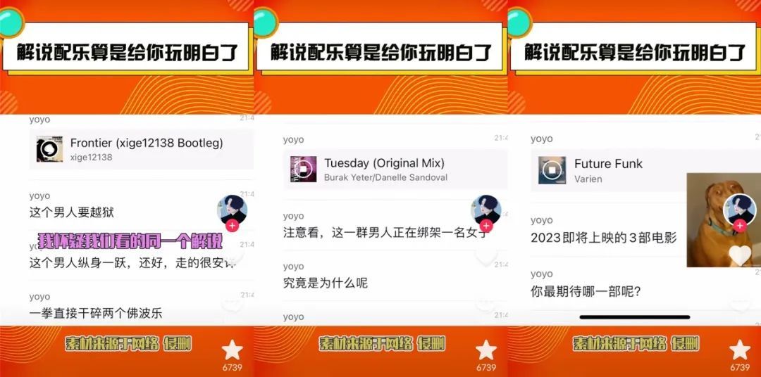 此时,配乐不再需要“字斟句酌”,它只需要满足两个条件:一是能瞬间抓住听众的耳朵,二是能满足所解说电影的情感主旨。前者由“模因”来实现,后者则与解说类视频的流水线生产有关。