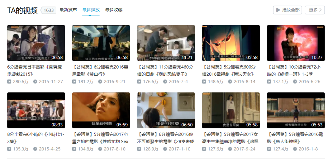 当这一模式填补了碎片化的阅片需求后,谷阿莫顺势走红。随后,这一品类迅速兴起,无数“X分钟说电影”的后浪正在洗出谷阿莫身上一切个人化、差异化的特质,将电影解说做成一条条流水线。“她好单纯好不做作,跟外面那些妖艳贱货好不一样”、“他是主角,主角怎么会死?”,这些具有谷阿莫标签的幽默与讽刺,连同他独树一帜的台湾腔,由于不够经济、不够高效而被“电子榨菜”的流水线抛弃。