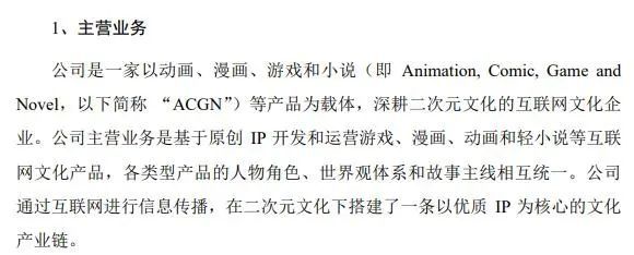 早在米哈游2018年提交的招股书中就提到,“公司主营业务是基于原创 IP 开发和运营游戏、漫画、动画和轻小说等互联网文化产品”、“公司通过互联网进行信息传播,在二次元文化下搭建了一条以优质 IP 为核心的文化产业链”。