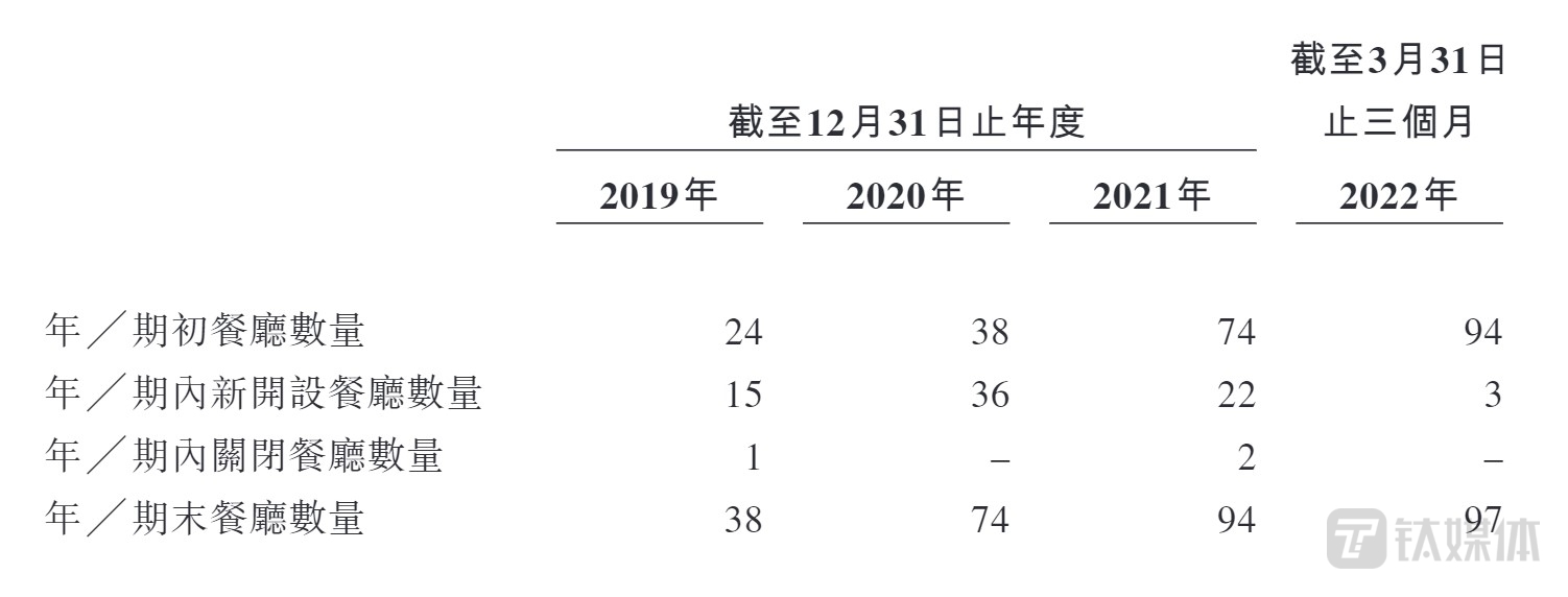 特海国际拆分后的第一步也是动态调整餐厅扩张计划。2021年海特国际开始优先优化现有餐厅的表现,并减慢新餐厅开业的数量及广度。其新开的餐厅数量由2020年的36家减少至2021年的22家。而在2022年第一季度,仅开设了3家新餐厅。