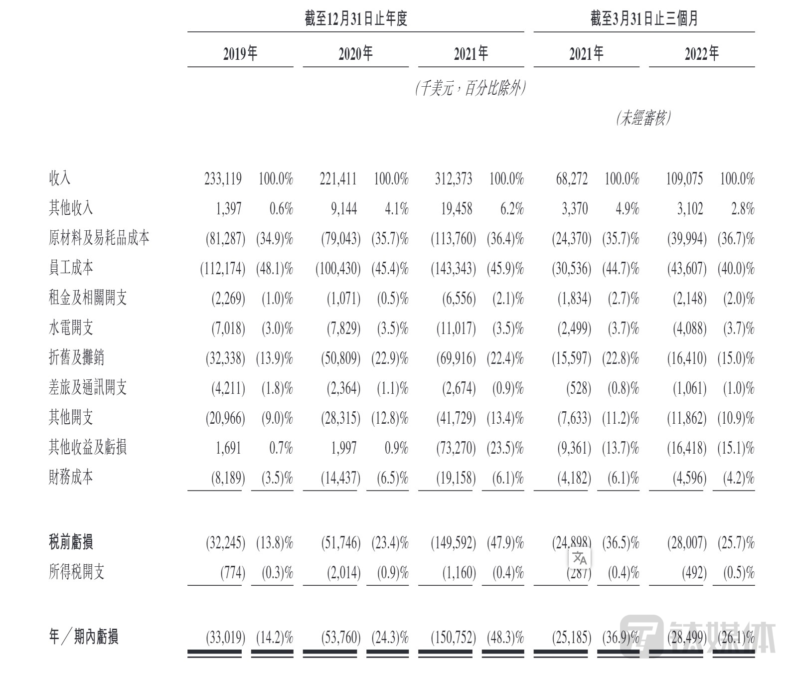 其实拆开海特国际的营收支出来看,海特国际的营收是有所增加的。2019年特海国际总收入2.33亿美元,到了2021年已经增加至3.12亿美元,复合年增长率约为15.8%。但其原材料和员工成本几乎占去了营收的大部分。