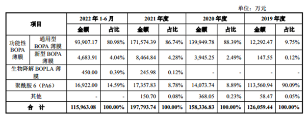 从业务上看,中仑新材主要拥有功能性BOPA薄膜、生物降解BOPLA薄膜、聚酰胺6(PA6),其中上述3大业务产生的销售收入具体如下: