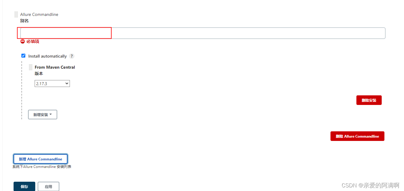 建议直接在jenkins上安装allure插件,如果上传插件,有可能在Jenkins全局配置中没有出现Allure Commandline 这一项配置。