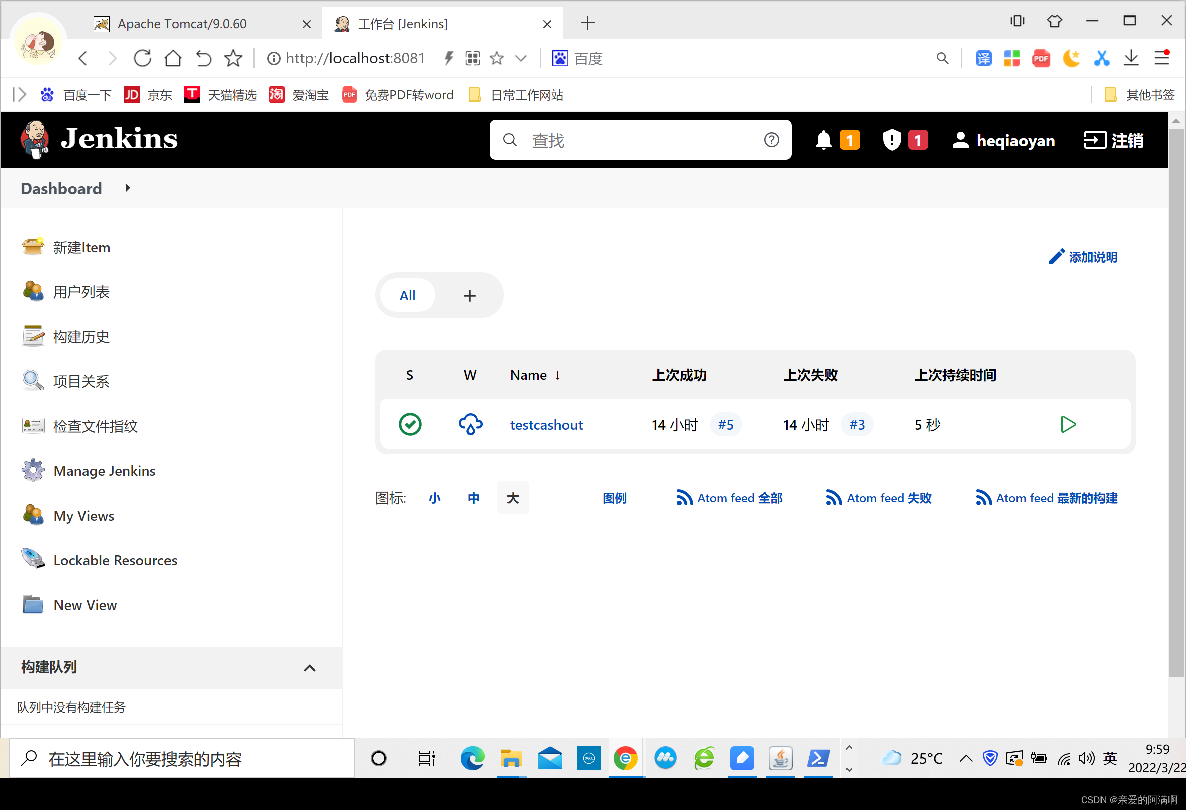 以上是主要的jenkins配置以及注意事项,像在全局配置里配置jdk等很简单的操作,在这里不再作展示。