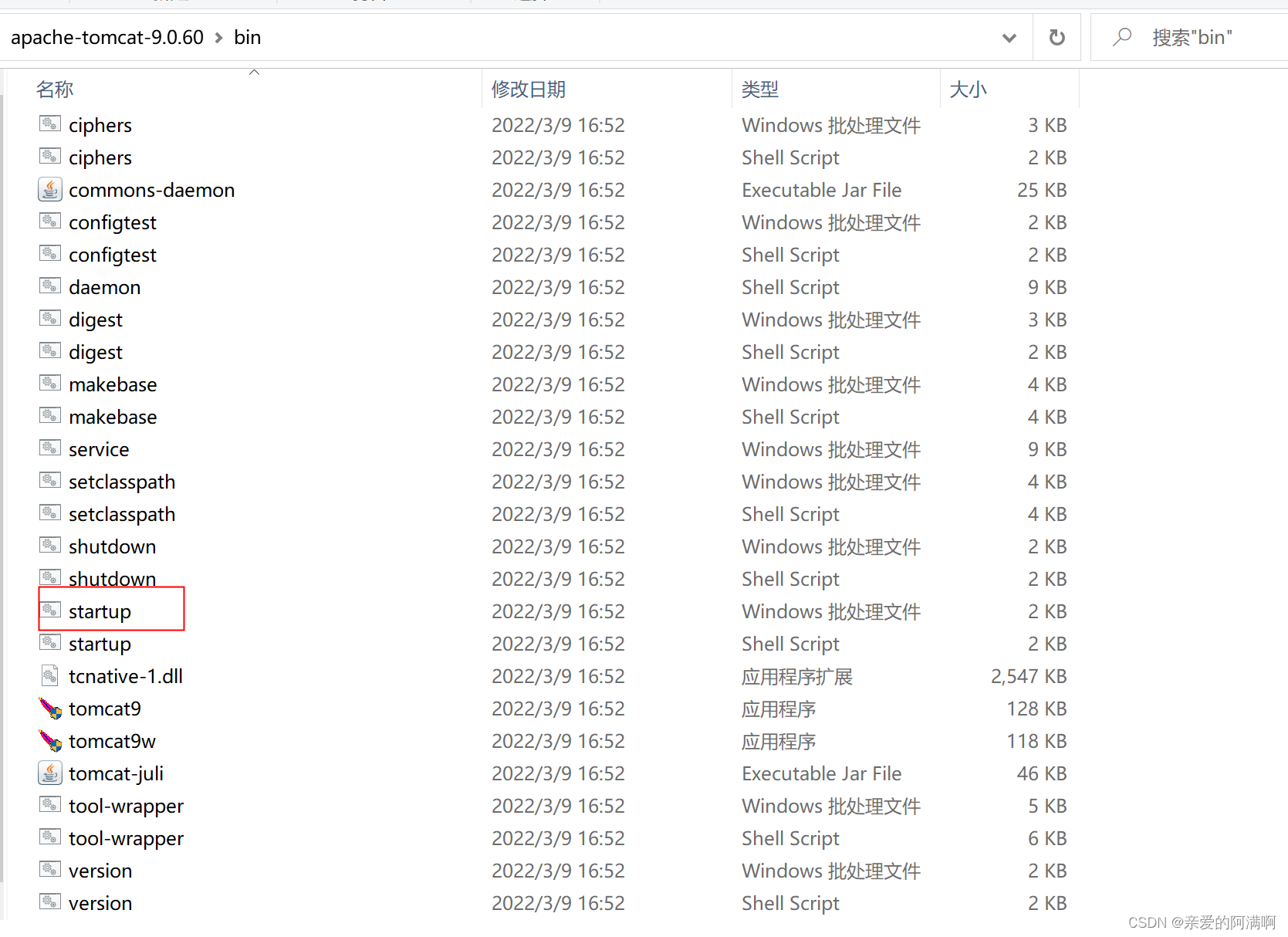 启动tomcat方法:进入tomcat的bin目录,双击startup