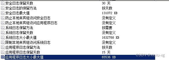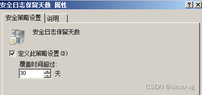 A4-9.安全日志文件大小至少为 128MB(131072KB),设置当达到最大的日志大小上限时,覆 盖早于 30 天的日志;